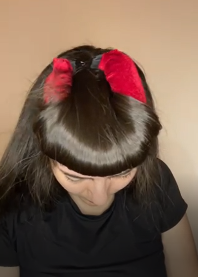 Enroule la mèche du milieu (tu peux t'aider d'une pince), idem pour la dernière.