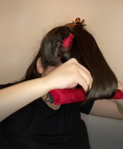 Enroule la mèche de devant sur le bigoudi. Fixe-le à l'aide des crochets